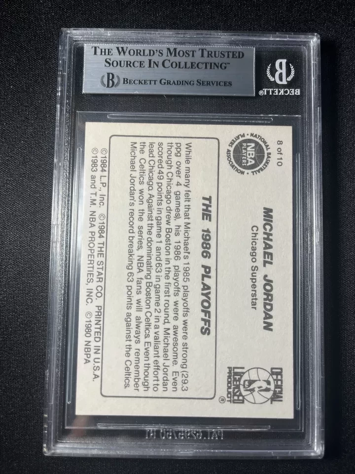1986 Star Basketball #8 Michael Jordan RC BGS 7.5 The Playoffs