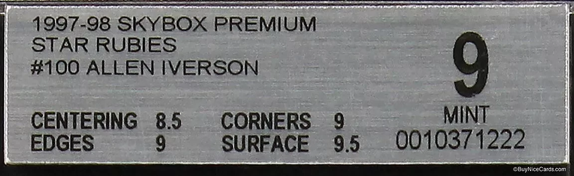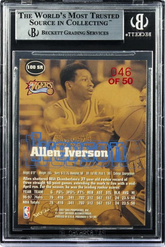 1997-98 Allen Iverson Fleer SkyBox Premium Star Rubies 50 #100 BGS 9 Mint