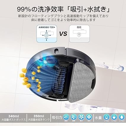 AIRROBO T20+ Robot Vacuum Cleaner, Automatic Garbage Collection, Strong Suction, Water Wiping, High Precision Radar, Multiple Map Mapping, High Speed Vibrating Mop, Automatic Charging, 180 Minutes of