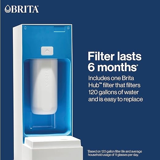 Brita Hub Compact Countertop Water Filter System, 9 Cup Water Reservoir, Includes 6 Month Carbon Block Filter, White, 87344
