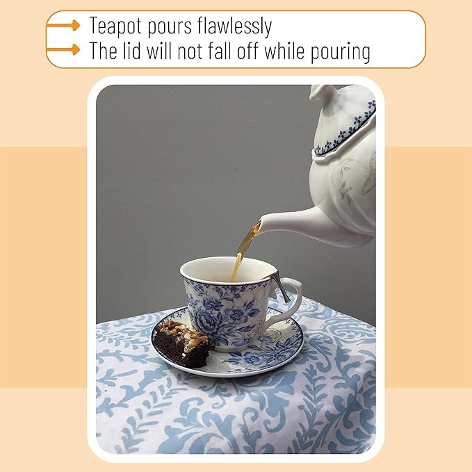 BTaT- Blue Dream Tea Set, Tea cups (8oz), Tea Pot (48oz), Creamer and Sugar Set, Gift box, China Tea Set, Tea Service, Tea Cups and Saucer Set, Tea Set for Adults, Porcelain Tea Set