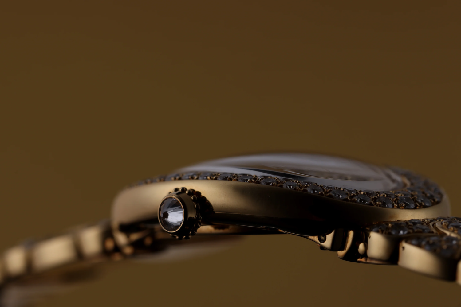 CHOPARD HAPPY SPORT ROUND 18K ROSE GOLD DIAMOND ENCRUSTED WATCH REF277472-5001