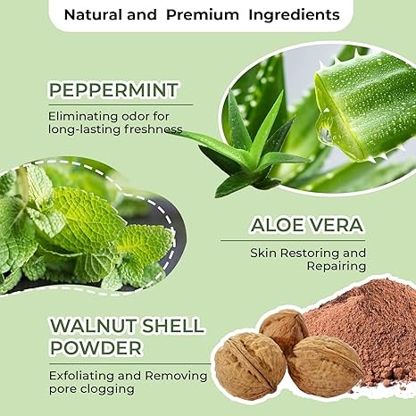 Detox Scrub 8.8 oz with Peppermint, Aloe Vera and Walnut Shell Powder, Underarm Scrub Helps on Removing Odor, Deep Cleanse & Exfoliating, for Legs, Knee, Feet, Hands Whole Body, Armpit