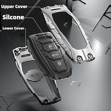 Heavy Metal Key Fob Cover Case Protector for Audi, Keychain, Accessories for 2020 2021 2022 Audi A3 A6 A7 A8 A8L E-Tron Q7 Q8 RS6 RS7 S3 S6 S7 SQ7 SQ8 (Tpye A-Black)