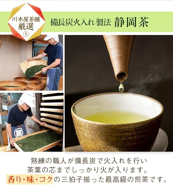 Kawamotoya Chaho, Binchoto-Charcoal-fired Shizuoka Tea, Deep Steamed Processing, Kakegawa Tea, High Quality, 2 Types of Japanese Tea, Gift Tea, Bamboo Basket Included, Gift Wrapping, Kawamotoya Tea