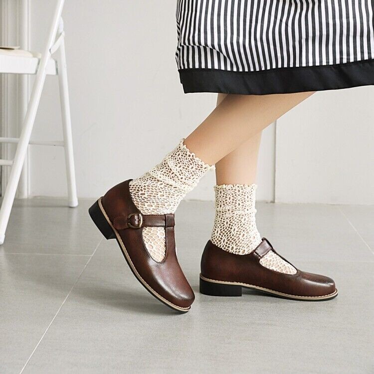 Mary Janes Womens Flats T-Strap College Shoes Brogue Party Pumps Oxfords 34-48