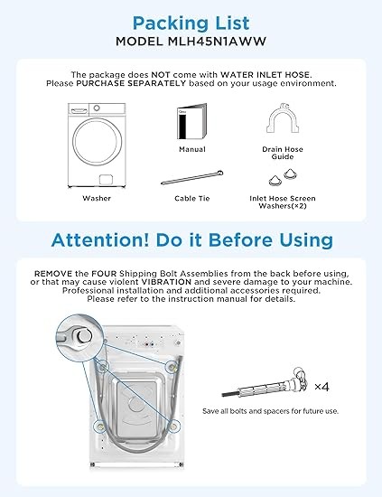 Midea MLH45N1AWW Front Load Washer, Automatic Machine, Vibration Control, Pre-Soak, Speed Wash, 10 Cycles, Energy Star Certified, 4.5 Cu.ft, White