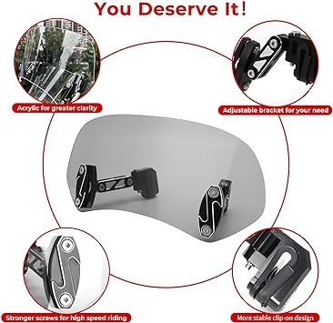 Motoparty Motorcycle Windshield Extension Upgrade Adjustable Clip Universal for Honda Suzuki Kawasaki Yamaha Aprilia Clearer Vision Easy to Install More Stable Clip on Windshield Extension(Small,Gray)