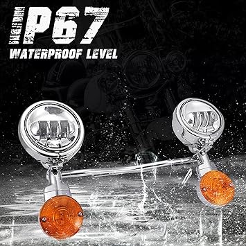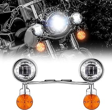 Motorcycle Passing Light Bar Turn Signals Fog Lights Set Chrome Steel for Harley Honda Suzuki Kawasaki Yamaha