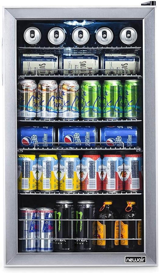 NewAir Beverage Refrigerator Cooler 126 Cans Free Standing with Right Hinge Glass Door Mini Fridge Beverage Organizer Perfect For Beer, Wine, Soda, And Cooler Drinks