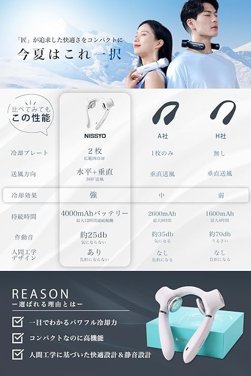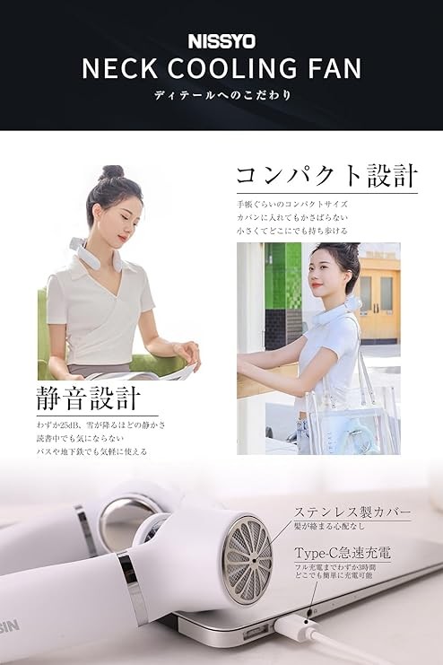 NISSYO, Neck Cooler, Cooling Plate, Silent, Neck Fan, Powerful, Long Continuous Operation, Ergonomic Design, Lightweight, 3 Levels of Air Flow Adjustment, 360° Fan, USB Rechargeable, Gift, Peltier,