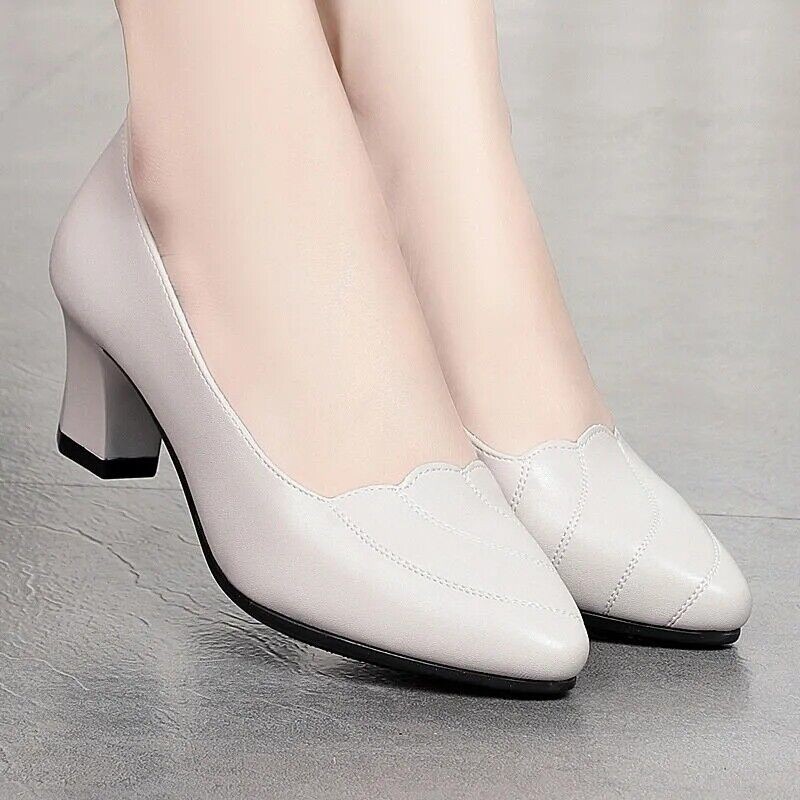 Pointed Toe Fashion Women Mid Heel Pumps Casual Office Shoes Slip On High Heels