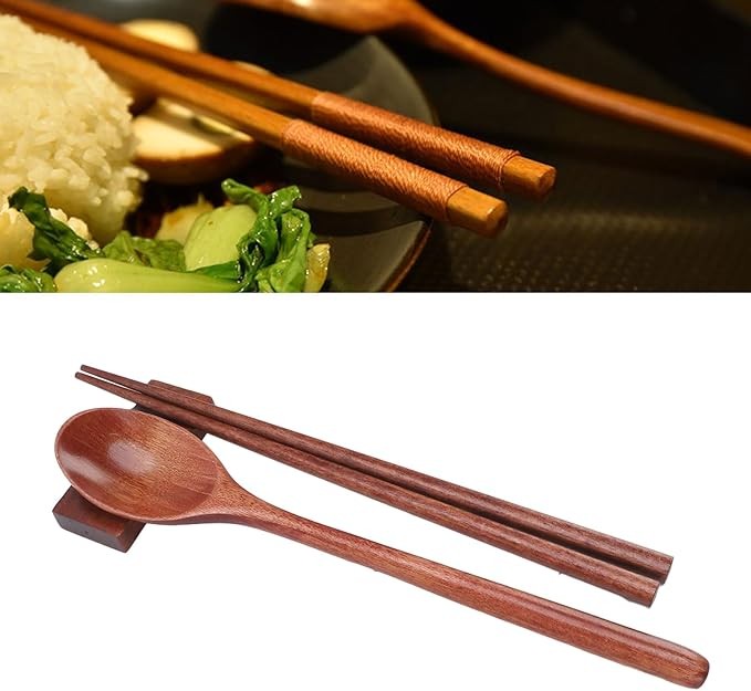 Portable Wooden Spoon and Chopsticks Set Reusable Utensil Set with Case Kitchen Utensils