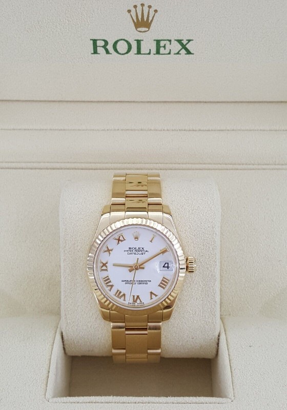 Rolex Lady DateJust President 178278 18K Yellow Gold 31mm White Dial Box & P