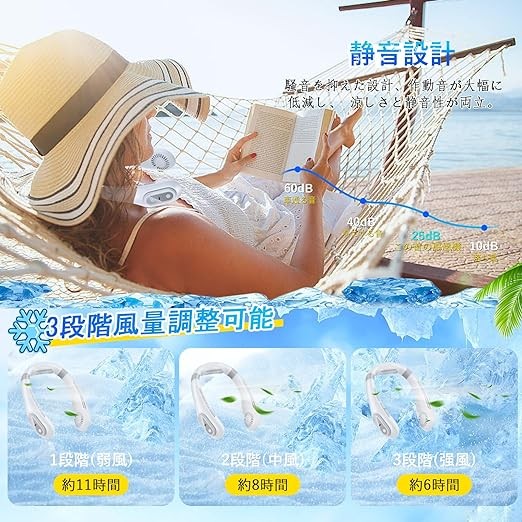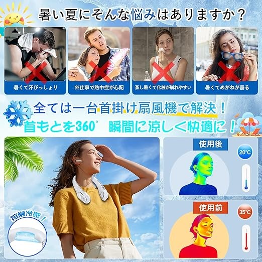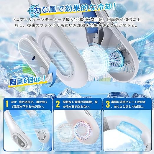 Seefox Neck Cooler (2024 Summer Limited Edition) Neck Fan, Cooling Plate Included, Wingless, 3 Levels of Air Flow Adjustment, Rapid Cooling, U-Shaped Neck Fan, Quiet, Powerful Blower, Lightweight