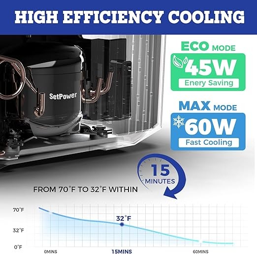 Setpower RV45D PRO 12V Refrigerator, Electric Cooler, 45 Quart (43L) Car Fridge, Portable Refrigerator 1224V DC 100-240V AC,Car Refrigerator,Portable Fridge Dual Zone for Vehicles