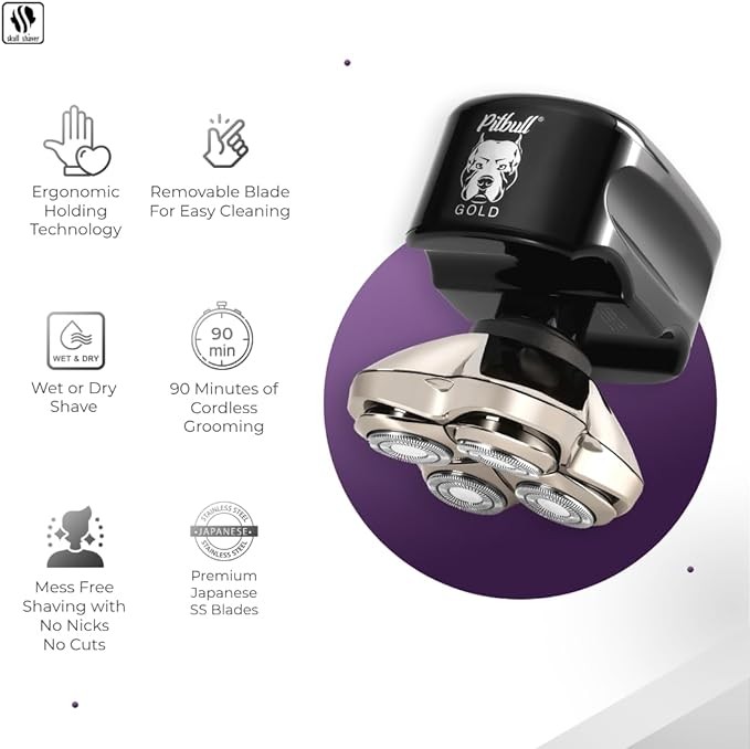 Skull Shaver Pitbull Gold PRO Head and Face Shaver: Ultimate Grooming Kit for Men, 5-in-1 Premium Bald Head Electric Head Shaver, Wet and Dry Easy Head Shaver