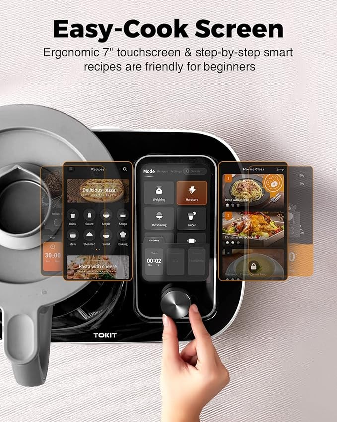 Stand Mixer, TOKIT Omni Cook Smart All-in-1 Food Processor for Sous Vide, Knead, Chop, Steam, 7" Touchscreen, 3000+ Guided Recipes, WiFi-Enabled, 2.3QT(2.2L), up to 356℉, White