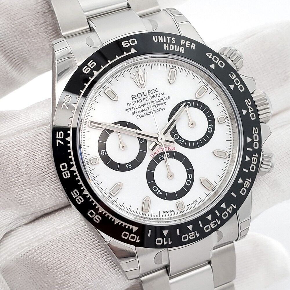 Unworn Rolex Daytona 40mm White Panda Index Dial Steel Watch 116500LN Box Papers