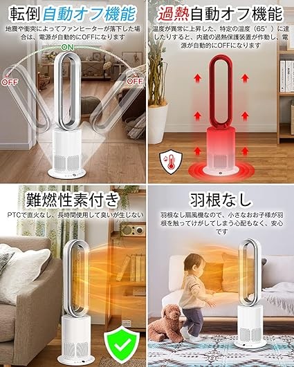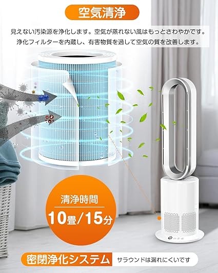 Wingless Fan, Tower Fan, Hot Air, Cold Air, No Blades, Can be Used All Year Round [Plasma Ion Generation, Air Purification] Air Circulation, Air Conditioning, 2 Seconds Blower, Power Saving, 10 Levels